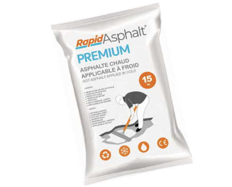 Réparation des voiries, à -15 °C. Conçu avec un liant végétale, peut se conserver en sacs pendant 10 ans !